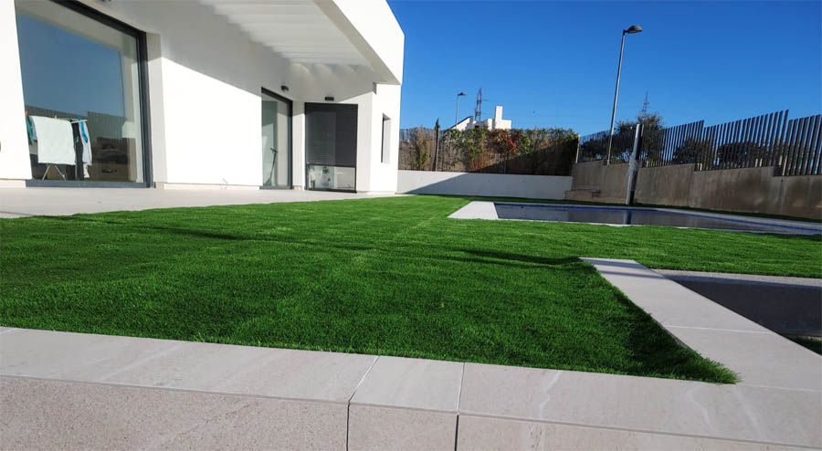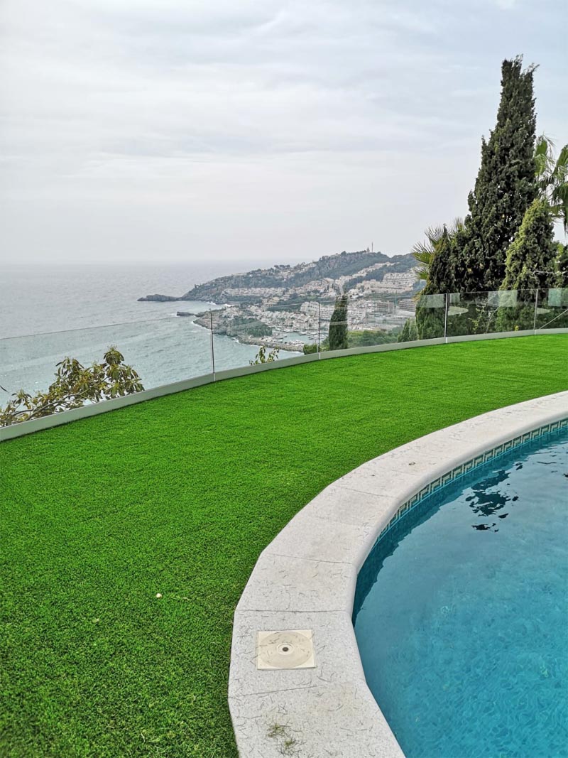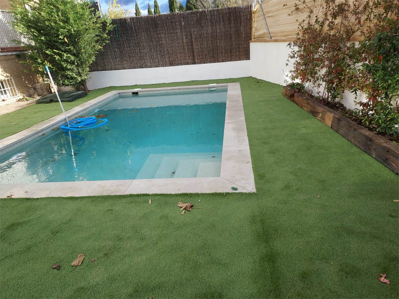 Venta de césped artificial reciclado para poner en piscinas, pasillos, jardines y zonas comunitarias de comunidades de propietarios.